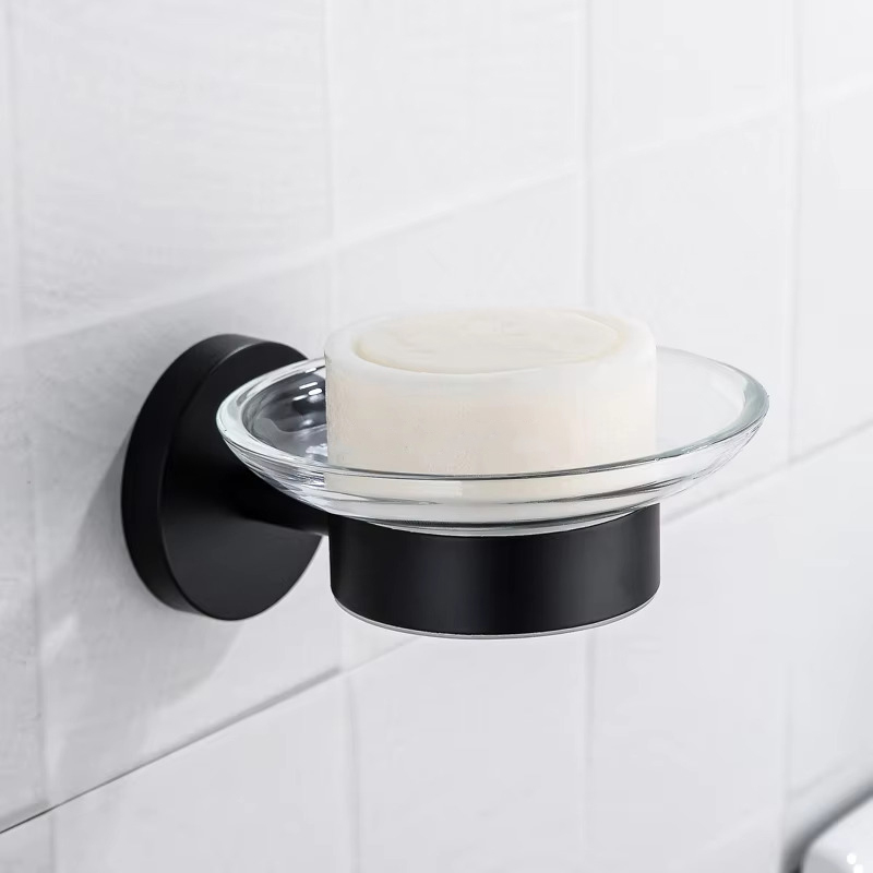 CERANO - Nástěnná mýdlenka Lineo - černá matná, transparentní sklo