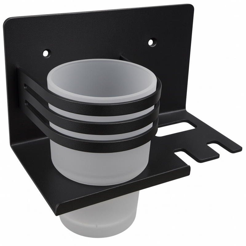 Hranatý tvar bude perfektně ladit se sprchovými zástěnami Cerano se stejnou povrchovou úpravou. Hranatá sklenice, která je součástí balení, mají povrchový design mléčného skla, takže budou perfektním doplňkem k zástěnám Onyx se stejně designovým sklem a profily s černou matnou povrchovou úpravou. Je odnímatelná, takže údržba je velmi snadná.