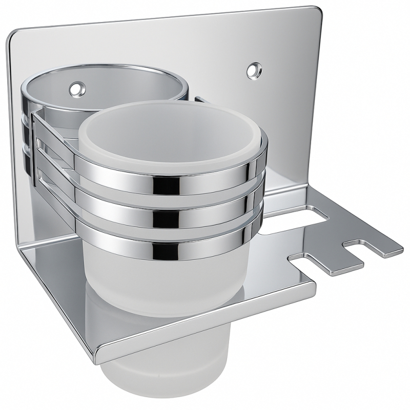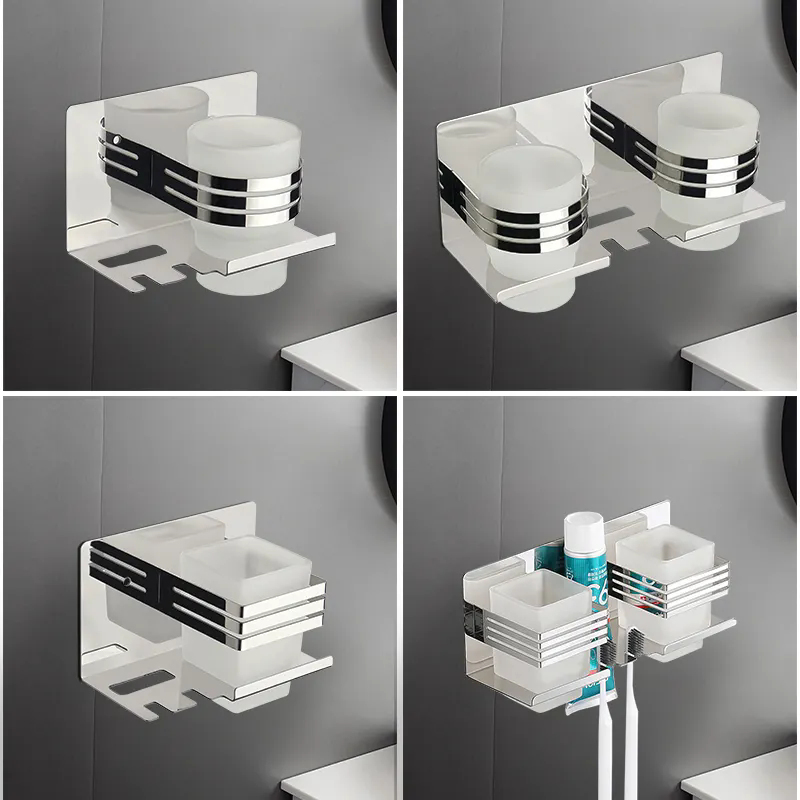 Samotný držák poskytuje ideální řešení pro hygienické zavěšení zubních kartáčků a vertikální postavení zubní pasty.