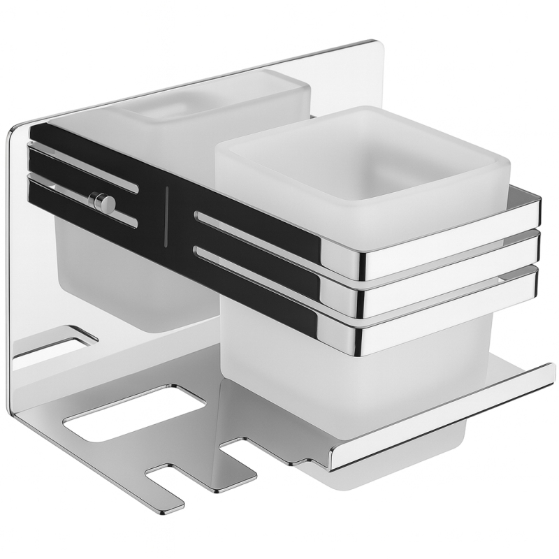 Samotný držák poskytuje ideální řešení pro hygienické zavěšení zubních kartáčků a vertikální postavení zubní pasty ve výřezech vedle sklenice.