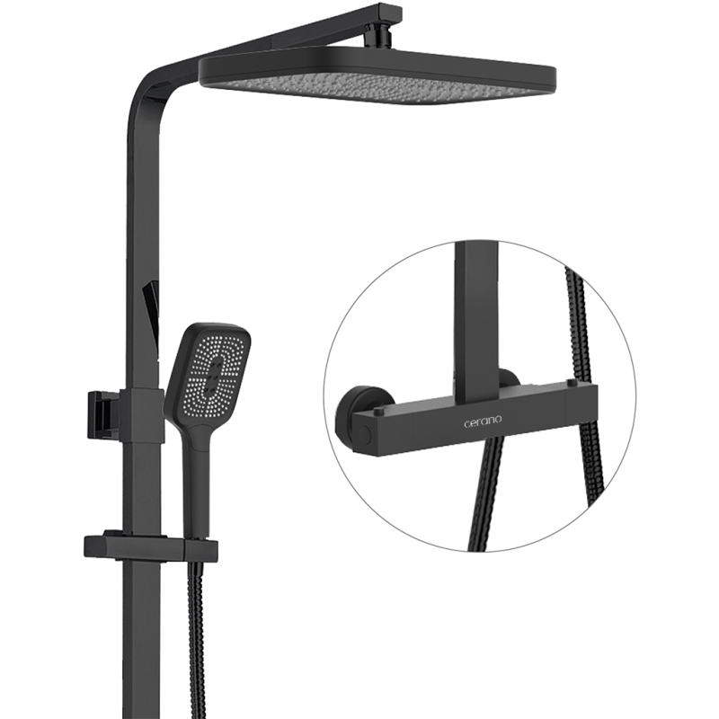 CERANO - Sprchový nástěnný sloup Octavia - termostatická sprchová baterie - černá matná