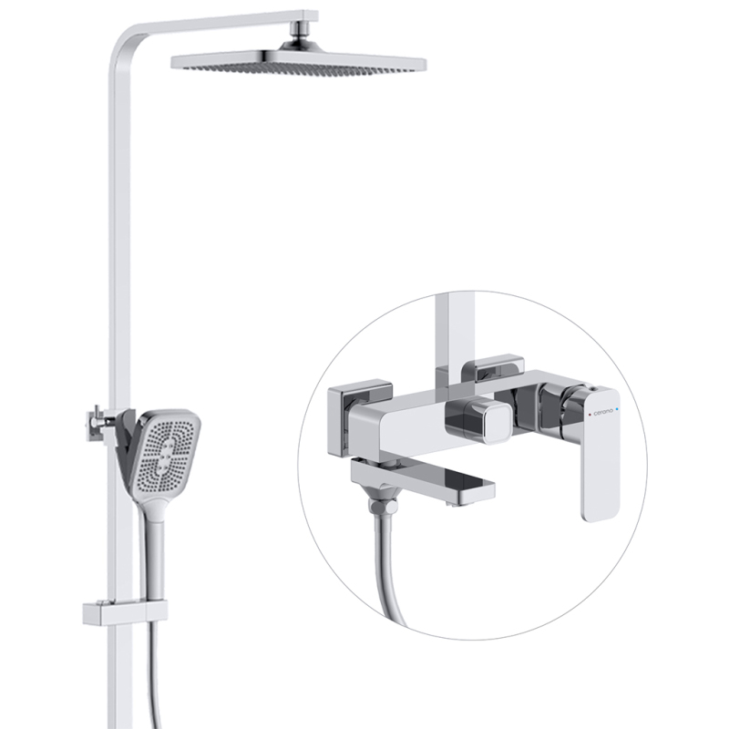 CERANO - Sprchový nástěnný sloup Zenira - vanová otočná baterie - chrom