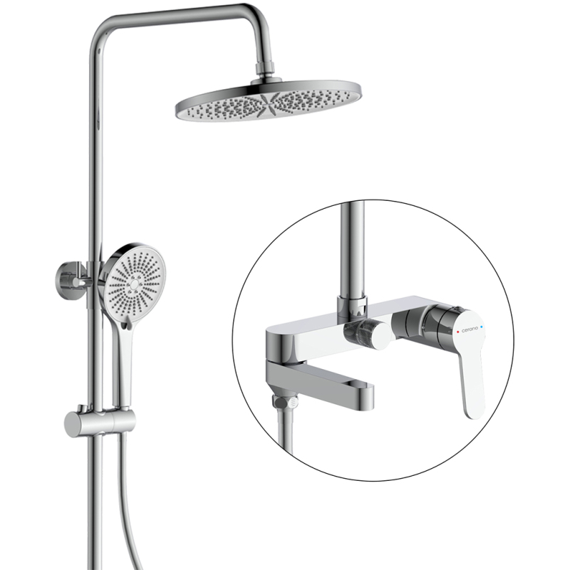 CERANO - Sprchový nástěnný sloup Velea - vanová otočná baterie - chrom