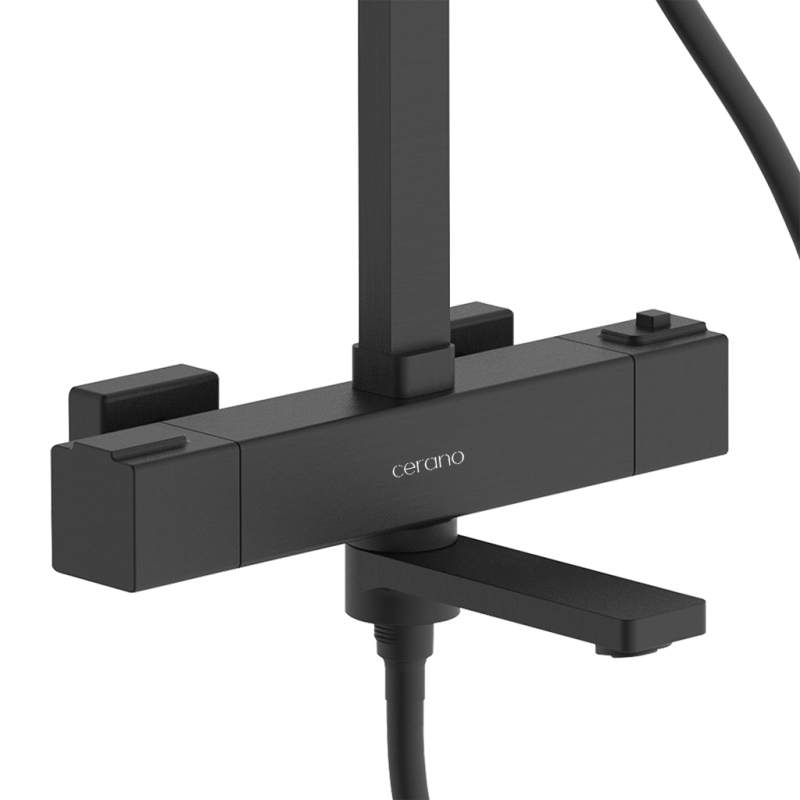 CERANO - Sprchový nástěnný sloup Velar - termostatická vanová otočná baterie - černá matná