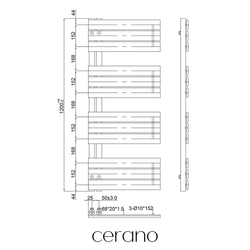 Standartní připojení radiátoru je 1/2" , což zajišťuje kompatibilitu s ventily a přípojnými sadami Cerano ,i od jiných výrobců. Ujistěte se, že všechny součásti odpovídají tomuto průměru, aby byl zajištěn bezpečný a efektivní provoz.