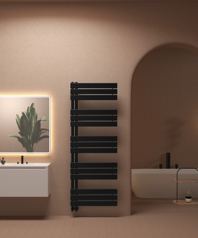 expedice do 7 dnůCERANO - Koupelnový radiátor Theo - L/P - asymetrické připojení 50mm - 650W - černá matná - 1200x500 mm