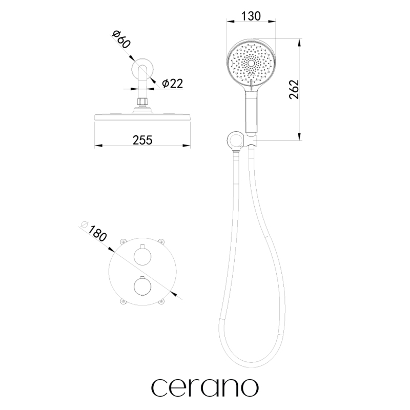 CERANO - Sprchová podomítková souprava Tiziana - termostatická - box - chrom