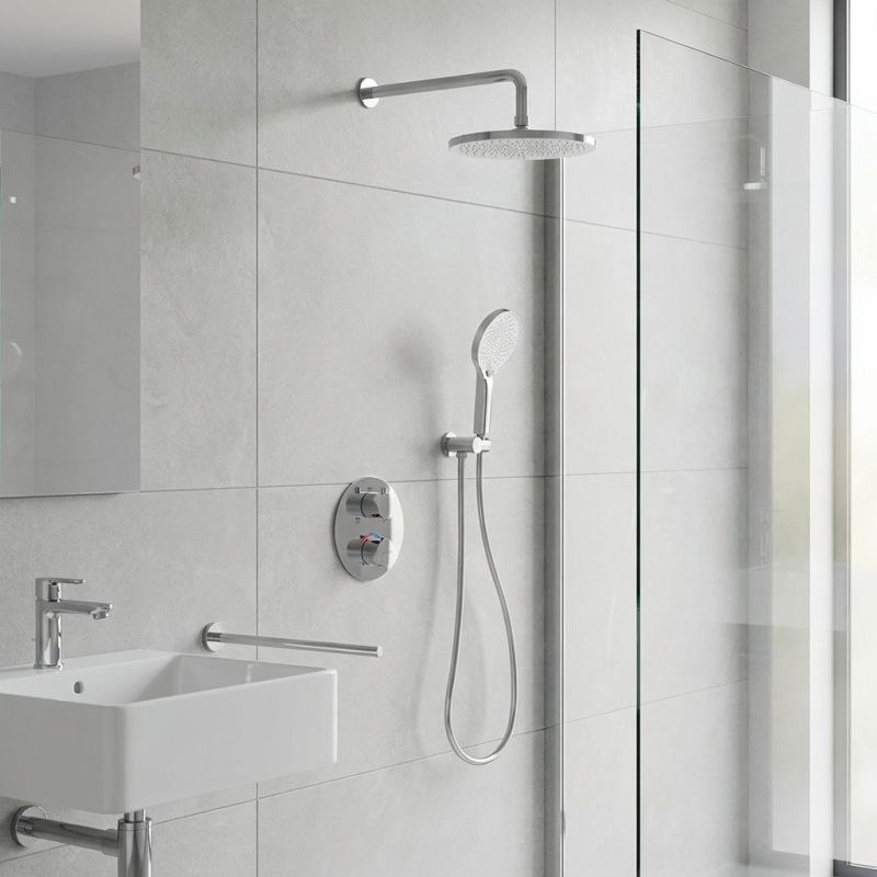 Termostat slouží k regulaci teploty vody. Smíchává horkou a studenou vodu do předem nastavené teploty a udržuje konstantní teplotu vody i při kolísání tlaku v systému. Termostat přináší uživatelský komfort, zvýšenou bezpečnost, ale také pomáhá šetřit vodu a energii.