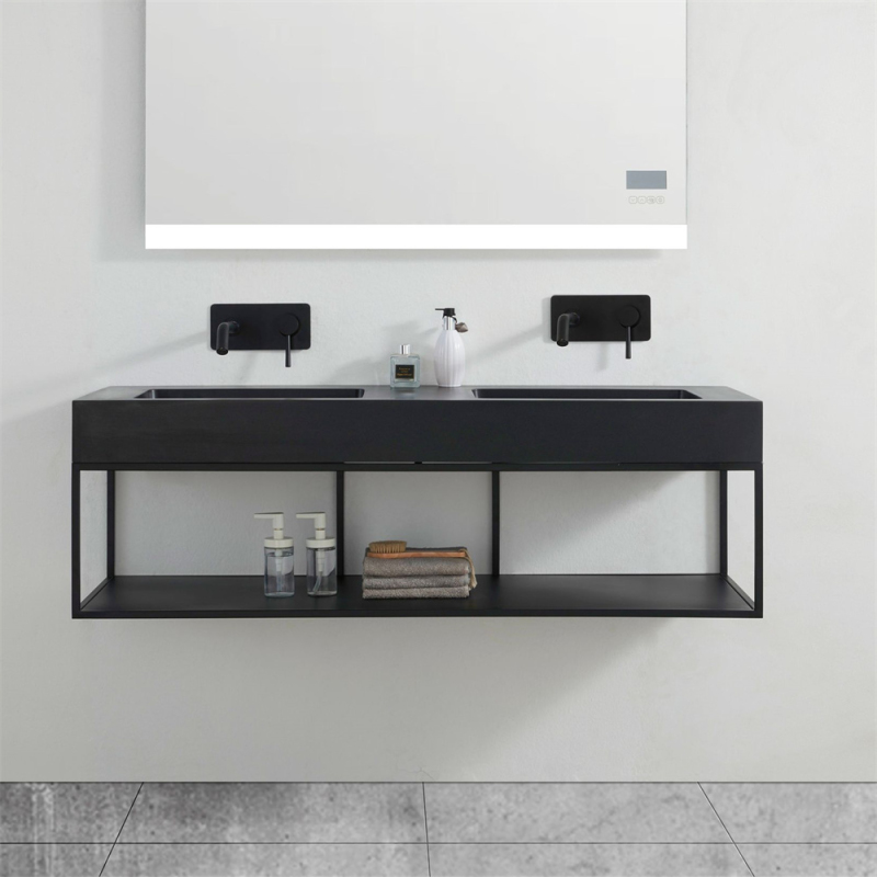 CERANO - Dvojumyvadlo z litého mramoru Geminia - nástěnné - černá matná - 133x45 cm