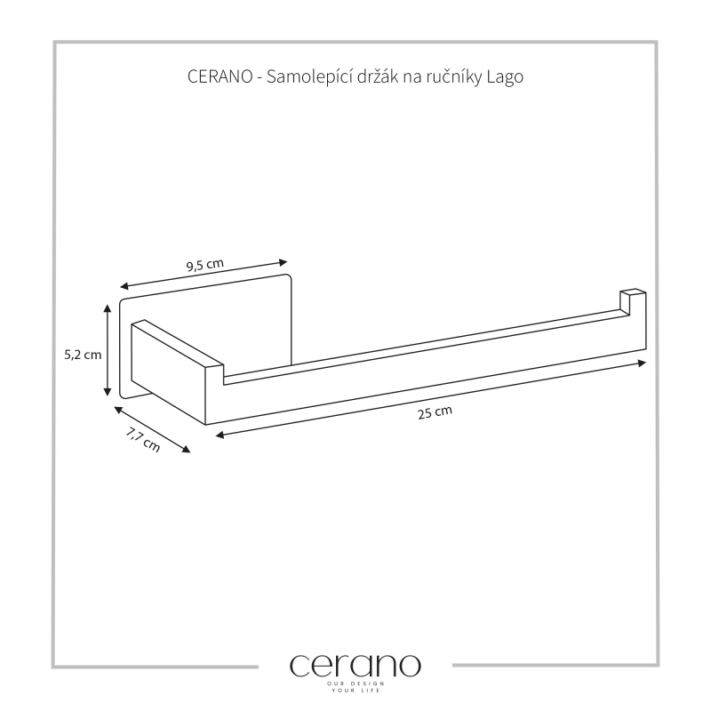 Držák na ručníky značky Cerano ze série Lago je vyroben z nerezové oceli, díky čemuž disponuje vysokou odolnost vůči vlhkosti a korozivním účinkům. Jeho design je jednoduchý, ale elegantní. V naší nabídce je k dispozici v černé matné barvě nebo chromové variantě.