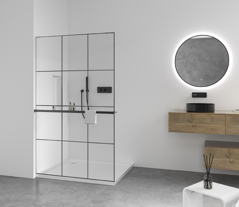 Díky promyšlené konstrukci je sklo uchyceno skrytě do profilů, které lze zapustit zcela nebo částečně ( až 14 mm do obkladů či dlažby). Bez rušivých vzpěr tak vzniká čisté, elegantní řešení, které podtrhne moderní vzhled koupelny a dodá prostoru maximální vizuální lehkost.