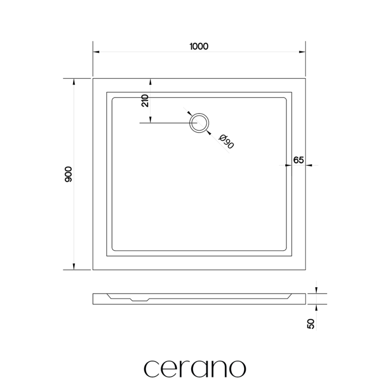 CERANO - Sprchová vanička obdélníková Soto - akrylát - bílá lesklá - 100x90x5 cm