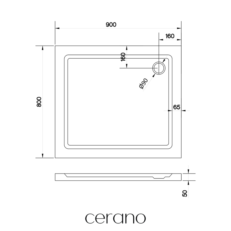 CERANO - Sprchová vanička obdélníková Soto - akrylát - bílá lesklá - 90x80x5 cm