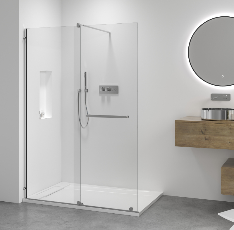 Stěnový profil s možností nastavení až do 30 mm je klíčovým prvkem při instalaci sprchové kabiny. Tento systém umožňuje přesné přizpůsobení kabiny rozměrům sprchového koutu, a zároveň kompenzuje zakřivení nebo nerovnosti stěn.