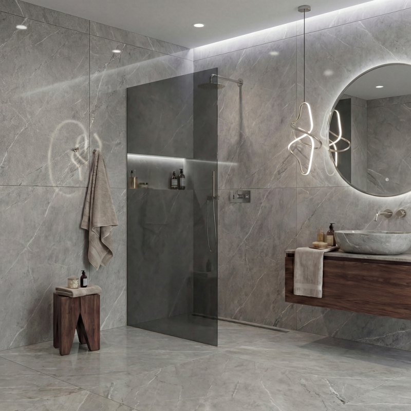 Díky promyšlené konstrukci je sklo uchyceno skrytě do profilů, které lze zapustit zcela nebo částečně ( až 14 mm do obkladů či dlažby). Bez rušivých vzpěr tak vzniká čisté, elegantní řešení, které podtrhne moderní vzhled koupelny a dodá prostoru maximální vizuální lehkost.
