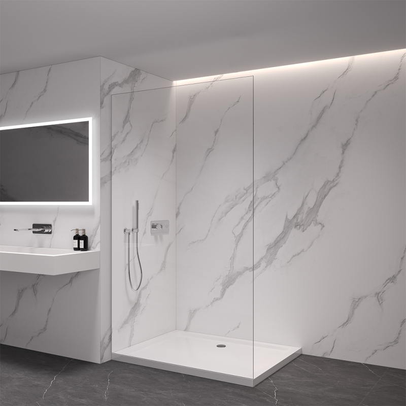 Díky promyšlené konstrukci je sklo uchyceno skrytě do profilů, které lze zapustit zcela nebo částečně ( až 14 mm do obkladů či dlažby). Bez rušivých vzpěr tak vzniká čisté, elegantní řešení, které podtrhne moderní vzhled koupelny a dodá prostoru maximální vizuální lehkost.