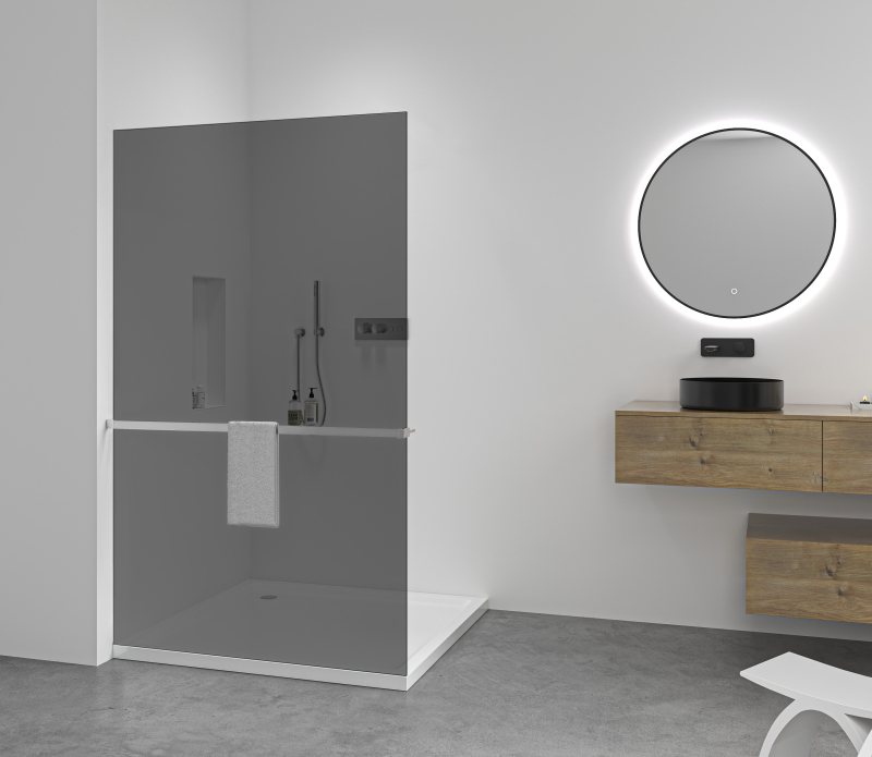 Stěnový profil umožňuje částečné nebo úplné zapuštění do stěny podle preferencí zákazníka. Tento systém nabízí moderní řešení při instalaci sprchové zástěny, zajišťuje čistý vzhled a zároveň umožňuje přesné přizpůsobení tvaru koupelny. Na rozdíl od běžných hliníkových profilů je tento vyroben z kvalitní nerezové oceli, která zajišťuje vyšší odolnost a delší životnost.