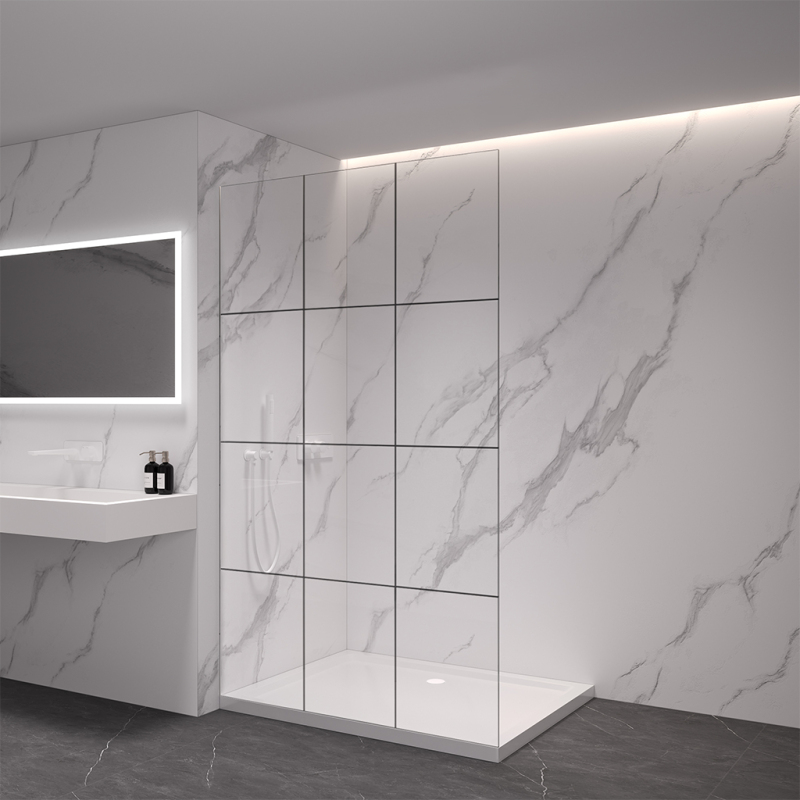 Díky promyšlené konstrukci je sklo uchyceno skrytě do profilů, které lze zapustit zcela nebo částečně ( až 14 mm do obkladů či dlažby). Bez rušivých vzpěr tak vzniká čisté, elegantní řešení, které podtrhne moderní vzhled koupelny a dodá prostoru maximální vizuální lehkost.