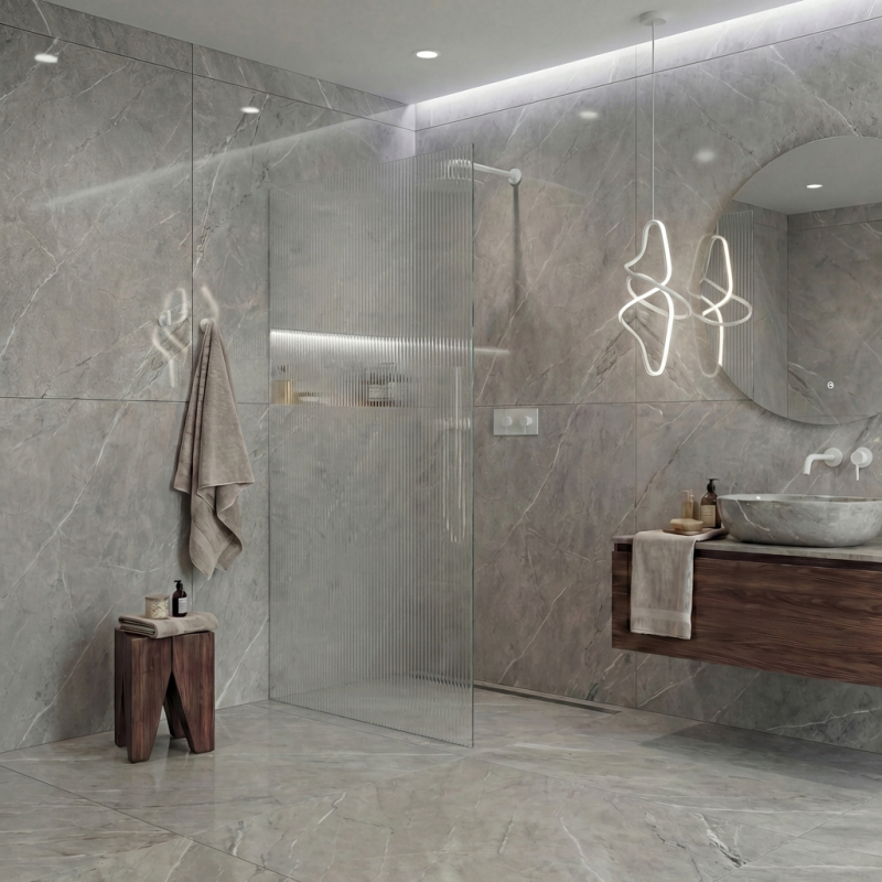 Díky promyšlené konstrukci je sklo uchyceno skrytě do profilů, které lze zapustit zcela nebo částečně ( až 14 mm do obkladů či dlažby). Bez rušivých vzpěr tak vzniká čisté, elegantní řešení, které podtrhne moderní vzhled koupelny a dodá prostoru maximální vizuální lehkost.