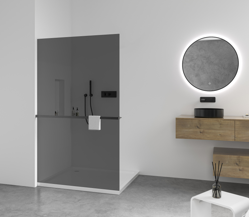 Barva je nanášena elektrostatickým nástřikem a následně vypalována při vysoké teplotě, díky čemuž se pevně spojí s povrchem hliníku. Tento proces zajišťuje dokonalou přilnavost, vysokou mechanickou odolnost a barevnou stálost i v náročném koupelnovém prostředí. Povrch se neolupuje, nešisuje a odolává vlhkosti, běžné údržbě i každodennímu opotřebení – profily si tak zachovávají svůj vzhled po mnoho let.