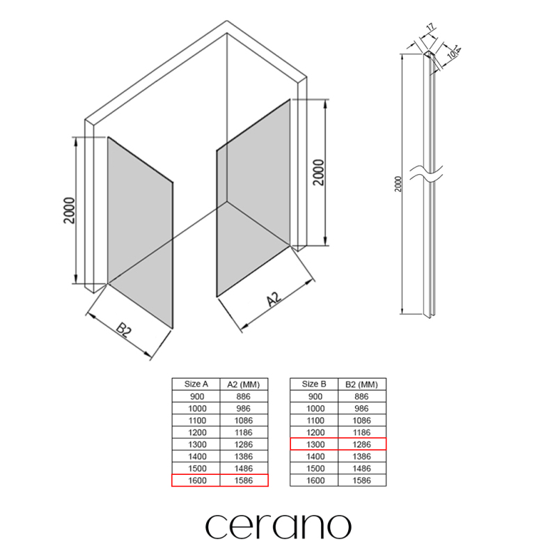 V rámci této série nabízíme širokou škálu rozměrů, abychom uspokojili různé potřeby našich zákazníků. Všechny sprchové kouty, dveře a zástěny značky Cerano jsou plně kompatibilní se sprchovými vaničkami Cerano ve stejných rozměrech, což zajišťuje bezproblémovou instalaci a dokonalé sladění. Sprchový kout lze navíc instalovat flexibilně – buď na odpovídající sprchovou vaničku, nebo přímo na podlahu podle vašich preferencí a možností koupelny.