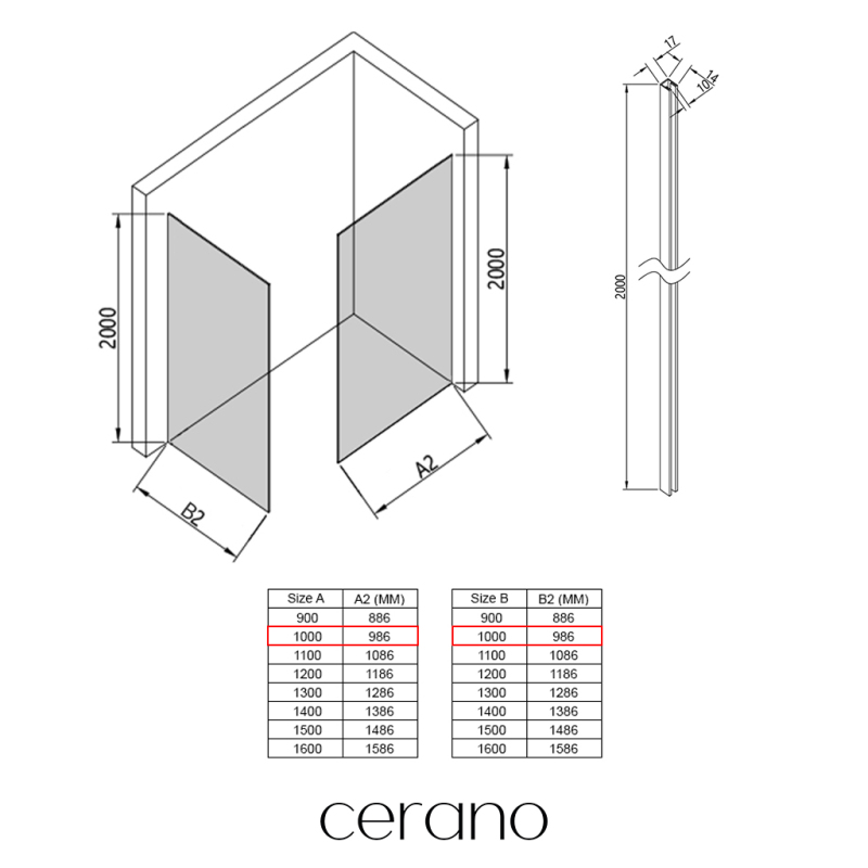 V rámci této série nabízíme širokou škálu rozměrů, abychom uspokojili různé potřeby našich zákazníků. Všechny sprchové kouty, dveře a zástěny značky Cerano jsou plně kompatibilní se sprchovými vaničkami Cerano ve stejných rozměrech, což zajišťuje bezproblémovou instalaci a dokonalé sladění. Sprchový kout lze navíc instalovat flexibilně – buď na odpovídající sprchovou vaničku, nebo přímo na podlahu podle vašich preferencí a možností koupelny.