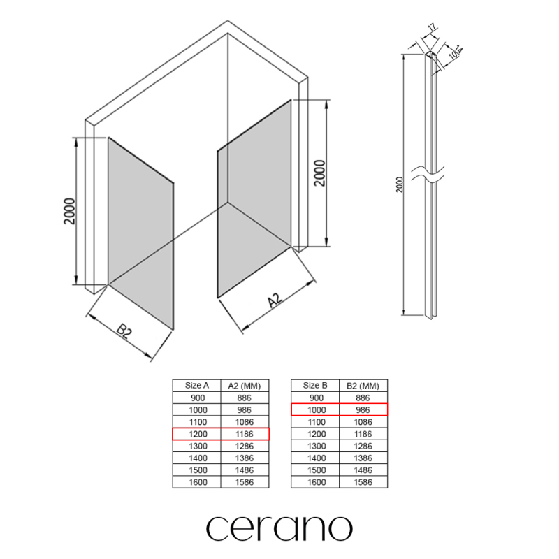 V rámci této série nabízíme širokou škálu rozměrů, abychom uspokojili různé potřeby našich zákazníků. Všechny sprchové kouty, dveře a zástěny značky Cerano jsou plně kompatibilní se sprchovými vaničkami Cerano ve stejných rozměrech, což zajišťuje bezproblémovou instalaci a dokonalé sladění. Sprchový kout lze navíc instalovat flexibilně – buď na odpovídající sprchovou vaničku, nebo přímo na podlahu podle vašich preferencí a možností koupelny.