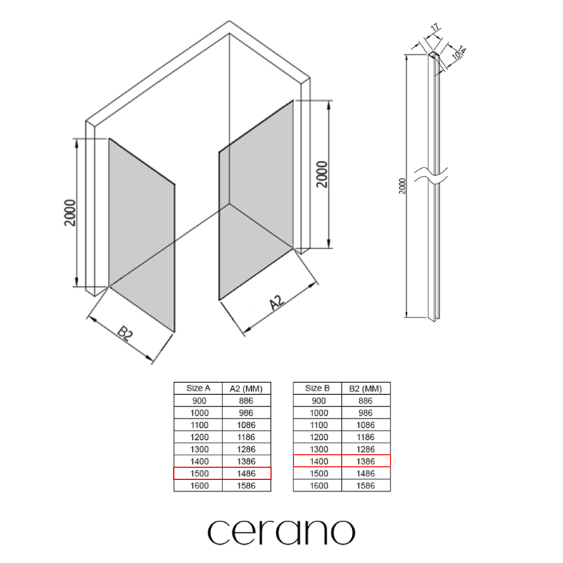 V rámci této série nabízíme širokou škálu rozměrů, abychom uspokojili různé potřeby našich zákazníků. Všechny sprchové kouty, dveře a zástěny značky Cerano jsou plně kompatibilní se sprchovými vaničkami Cerano ve stejných rozměrech, což zajišťuje bezproblémovou instalaci a dokonalé sladění. Sprchový kout lze navíc instalovat flexibilně – buď na odpovídající sprchovou vaničku, nebo přímo na podlahu podle vašich preferencí a možností koupelny.