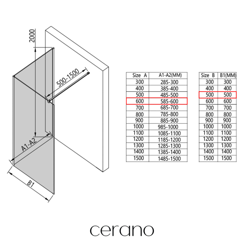 V rámci této série nabízíme širokou škálu rozměrů, abychom uspokojili různé potřeby našich zákazníků. Všechny sprchové kouty, dveře a zástěny značky Cerano jsou plně kompatibilní se sprchovými vaničkami Cerano ve stejných rozměrech, což zajišťuje bezproblémovou instalaci a dokonalé sladění. Sprchový kout lze navíc instalovat flexibilně – buď na odpovídající sprchovou vaničku, nebo přímo na podlahu podle vašich preferencí a možností koupelny.