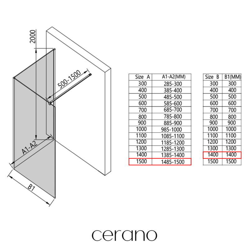 V rámci této série nabízíme širokou škálu rozměrů, abychom uspokojili různé potřeby našich zákazníků. Všechny sprchové kouty, dveře a zástěny značky Cerano jsou plně kompatibilní se sprchovými vaničkami Cerano ve stejných rozměrech, což zajišťuje bezproblémovou instalaci a dokonalé sladění. Sprchový kout lze navíc instalovat flexibilně – buď na odpovídající sprchovou vaničku, nebo přímo na podlahu podle vašich preferencí a možností koupelny.