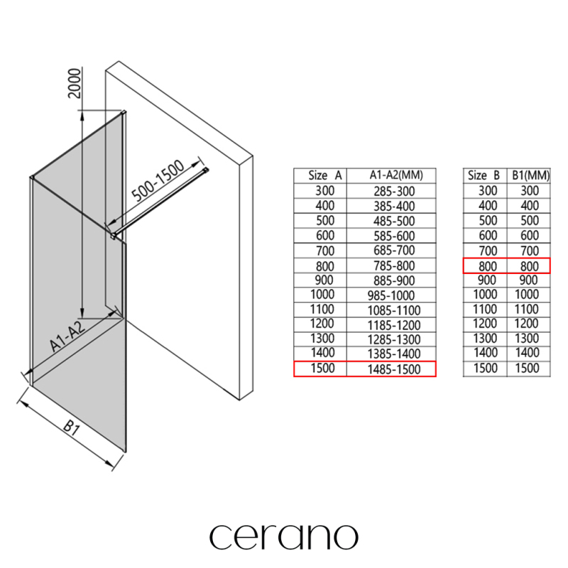 V rámci této série nabízíme širokou škálu rozměrů, abychom uspokojili různé potřeby našich zákazníků. Všechny sprchové kouty, dveře a zástěny značky Cerano jsou plně kompatibilní se sprchovými vaničkami Cerano ve stejných rozměrech, což zajišťuje bezproblémovou instalaci a dokonalé sladění. Sprchový kout lze navíc instalovat flexibilně – buď na odpovídající sprchovou vaničku, nebo přímo na podlahu podle vašich preferencí a možností koupelny.