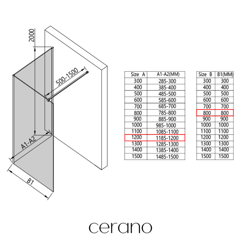 V rámci této série nabízíme širokou škálu rozměrů, abychom uspokojili různé potřeby našich zákazníků. Všechny sprchové kouty, dveře a zástěny značky Cerano jsou plně kompatibilní se sprchovými vaničkami Cerano ve stejných rozměrech, což zajišťuje bezproblémovou instalaci a dokonalé sladění. Sprchový kout lze navíc instalovat flexibilně – buď na odpovídající sprchovou vaničku, nebo přímo na podlahu podle vašich preferencí a možností koupelny.