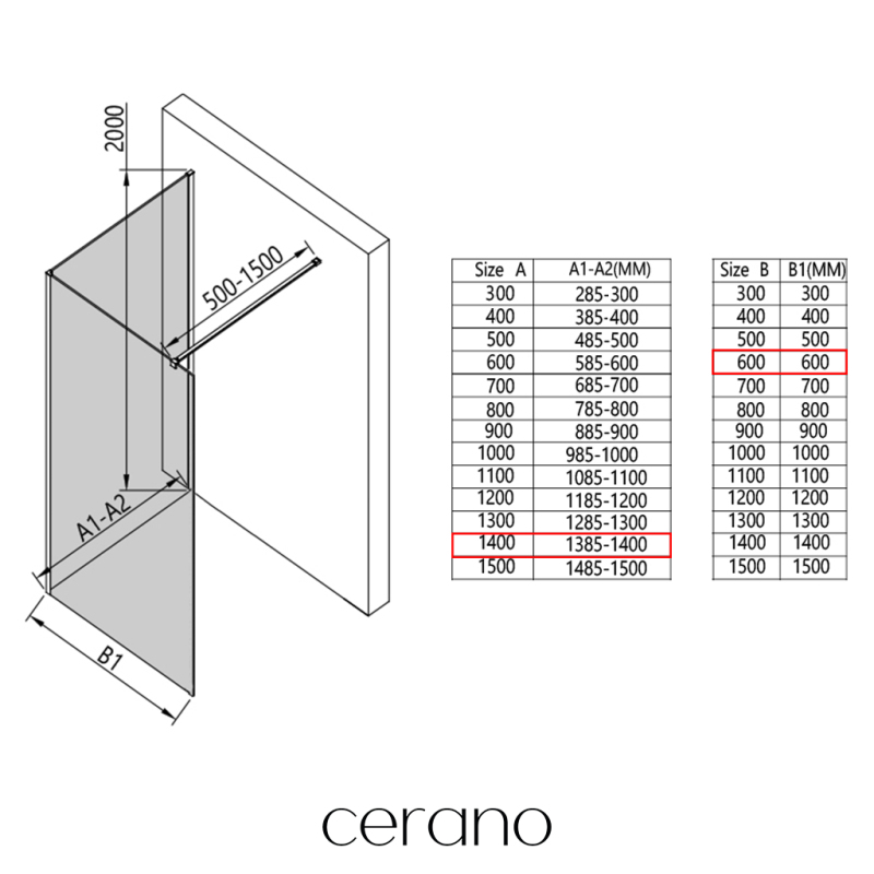 V rámci této série nabízíme širokou škálu rozměrů, abychom uspokojili různé potřeby našich zákazníků. Všechny sprchové kouty, dveře a zástěny značky Cerano jsou plně kompatibilní se sprchovými vaničkami Cerano ve stejných rozměrech, což zajišťuje bezproblémovou instalaci a dokonalé sladění. Sprchový kout lze navíc instalovat flexibilně – buď na odpovídající sprchovou vaničku, nebo přímo na podlahu podle vašich preferencí a možností koupelny.