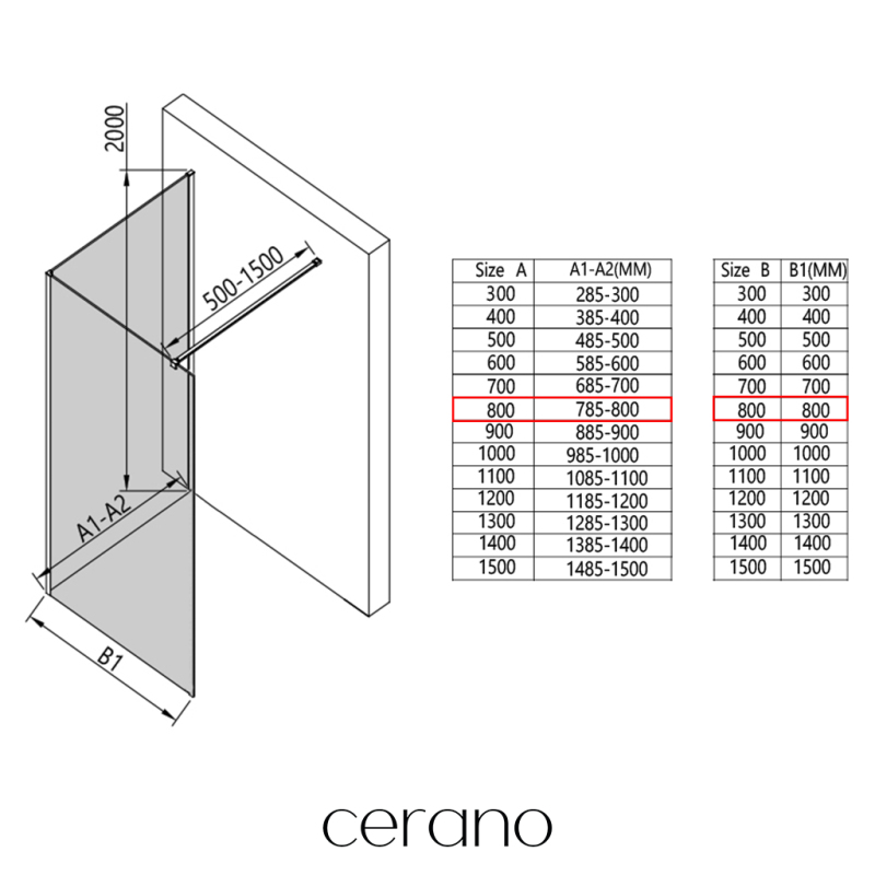 V rámci této série nabízíme širokou škálu rozměrů, abychom uspokojili různé potřeby našich zákazníků. Všechny sprchové kouty, dveře a zástěny značky Cerano jsou plně kompatibilní se sprchovými vaničkami Cerano ve stejných rozměrech, což zajišťuje bezproblémovou instalaci a dokonalé sladění. Sprchový kout lze navíc instalovat flexibilně – buď na odpovídající sprchovou vaničku, nebo přímo na podlahu podle vašich preferencí a možností koupelny.