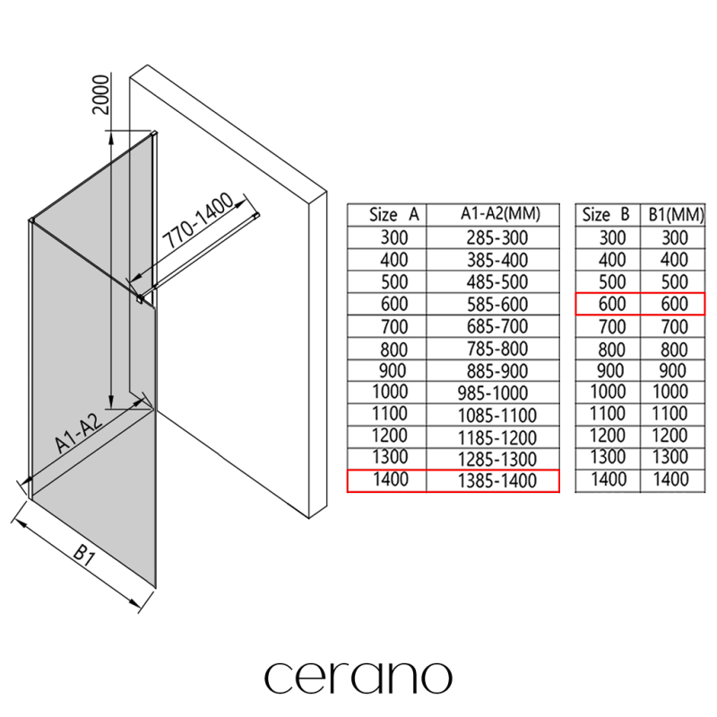 V rámci této série nabízíme širokou škálu rozměrů, abychom uspokojili různé potřeby našich zákazníků. Všechny sprchové kouty, dveře a zástěny značky Cerano jsou plně kompatibilní se sprchovými vaničkami Cerano ve stejných rozměrech, což zajišťuje bezproblémovou instalaci a dokonalé sladění. Sprchový kout lze navíc instalovat flexibilně – buď na odpovídající sprchovou vaničku, nebo přímo na podlahu podle vašich preferencí a možností koupelny.