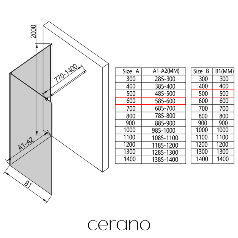 V rámci této série nabízíme širokou škálu rozměrů, abychom uspokojili různé potřeby našich zákazníků. Všechny sprchové kouty, dveře a zástěny značky Cerano jsou plně kompatibilní se sprchovými vaničkami Cerano ve stejných rozměrech, což zajišťuje bezproblémovou instalaci a dokonalé sladění. Sprchový kout lze navíc instalovat flexibilně – buď na odpovídající sprchovou vaničku, nebo přímo na podlahu podle vašich preferencí a možností koupelny.