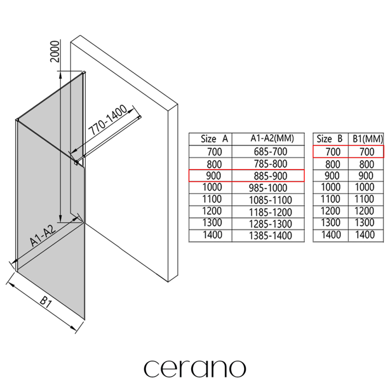 V rámci této série nabízíme širokou škálu rozměrů, abychom uspokojili různé potřeby našich zákazníků. Všechny sprchové kouty, dveře a zástěny značky Cerano jsou plně kompatibilní se sprchovými vaničkami Cerano ve stejných rozměrech, což zajišťuje bezproblémovou instalaci a dokonalé sladění. Sprchový kout lze navíc instalovat flexibilně – buď na odpovídající sprchovou vaničku, nebo přímo na podlahu podle vašich preferencí a možností koupelny.