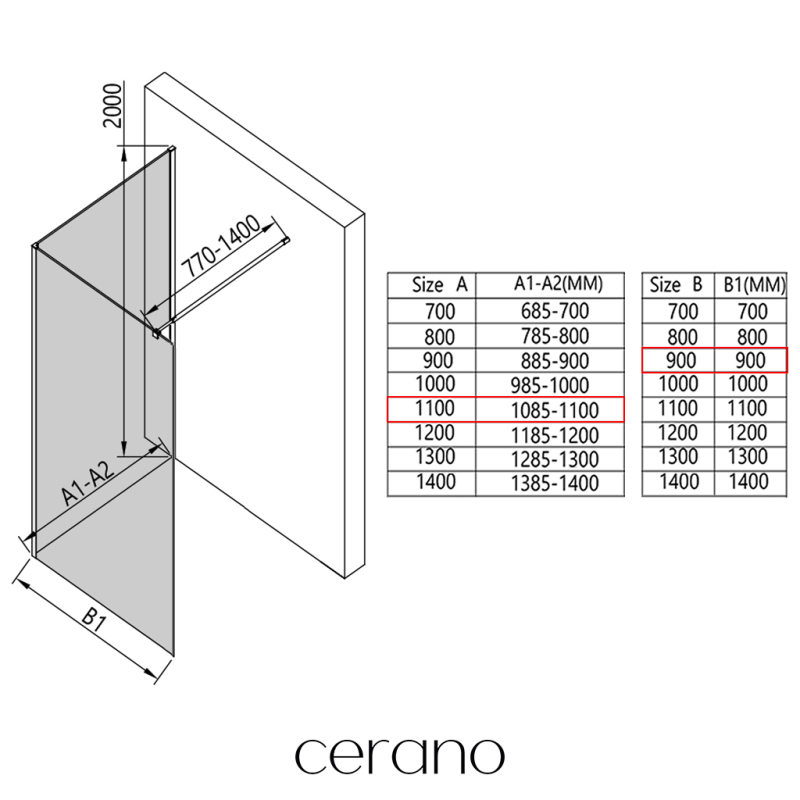V rámci této série nabízíme širokou škálu rozměrů, abychom uspokojili různé potřeby našich zákazníků. Všechny sprchové kouty, dveře a zástěny značky Cerano jsou plně kompatibilní se sprchovými vaničkami Cerano ve stejných rozměrech, což zajišťuje bezproblémovou instalaci a dokonalé sladění. Sprchový kout lze navíc instalovat flexibilně – buď na odpovídající sprchovou vaničku, nebo přímo na podlahu podle vašich preferencí a možností koupelny.