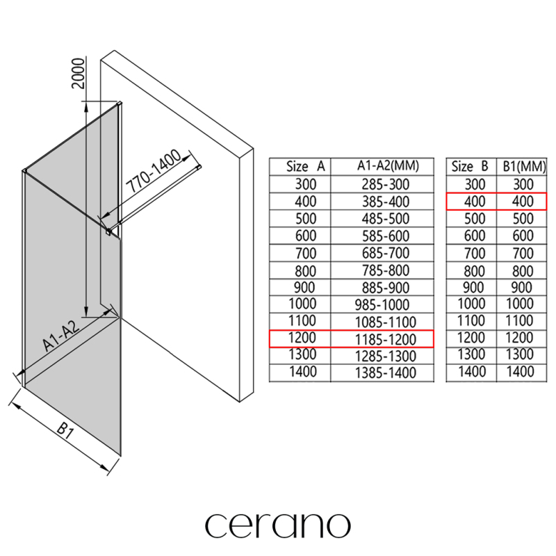 V rámci této série nabízíme širokou škálu rozměrů, abychom uspokojili různé potřeby našich zákazníků. Všechny sprchové kouty, dveře a zástěny značky Cerano jsou plně kompatibilní se sprchovými vaničkami Cerano ve stejných rozměrech, což zajišťuje bezproblémovou instalaci a dokonalé sladění. Sprchový kout lze navíc instalovat flexibilně – buď na odpovídající sprchovou vaničku, nebo přímo na podlahu podle vašich preferencí a možností koupelny.