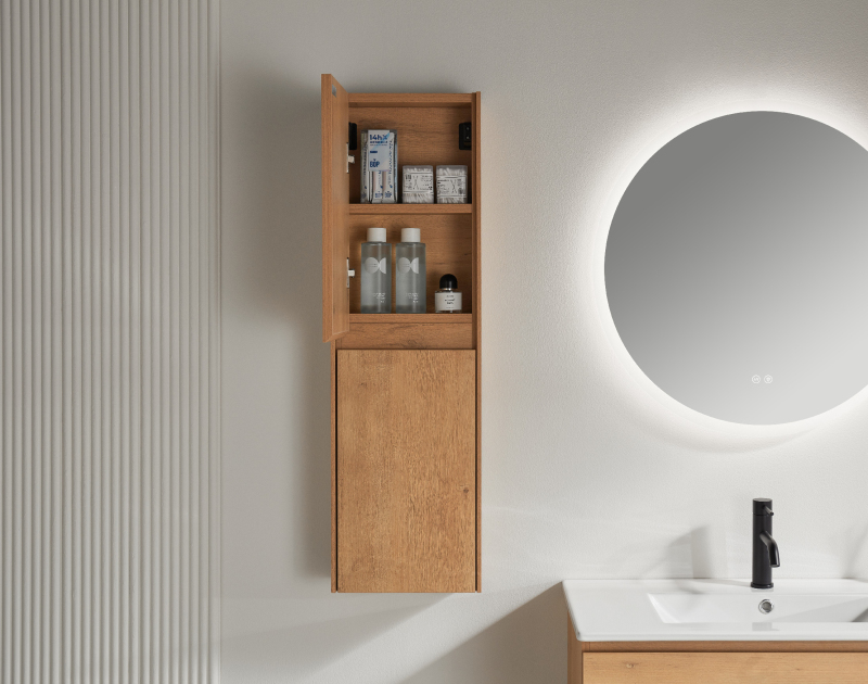 Skříňka je součástí vzájemně kompatibilní řady koupelnového nábytku, snadno ji zkombinujete s ostatními prvky, rozšíříte úložný prostor a zachováte jednotný styl celé koupelny.