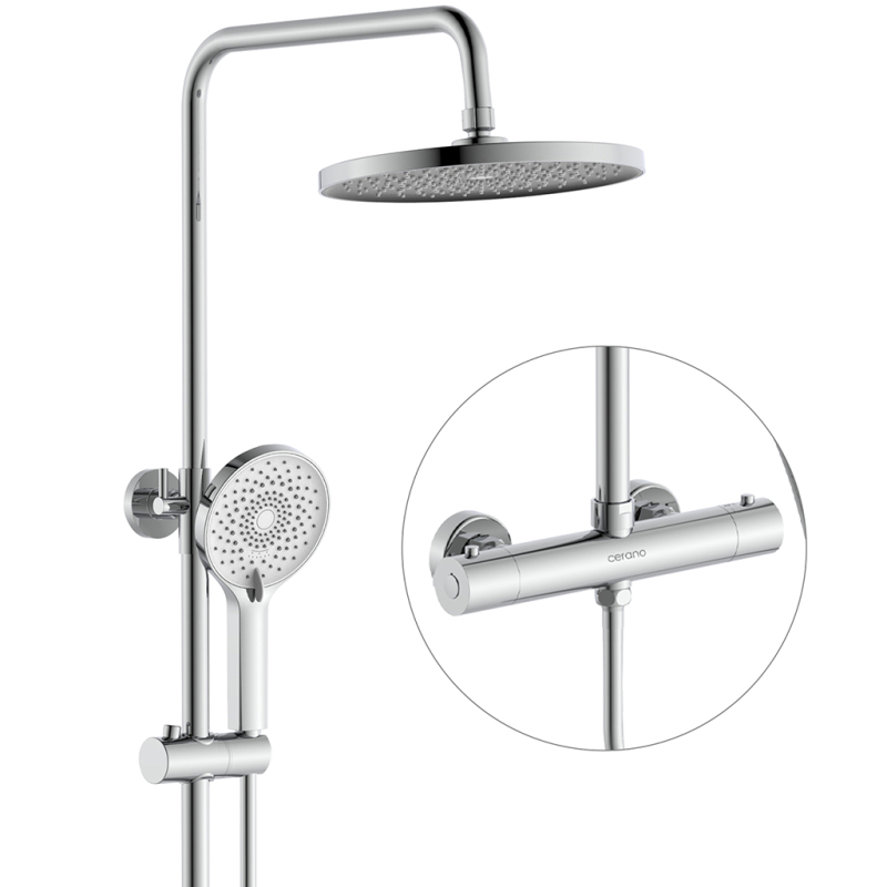 CERANO - Sprchový nástěnný sloup Selma - termostatická sprchová baterie - chrom