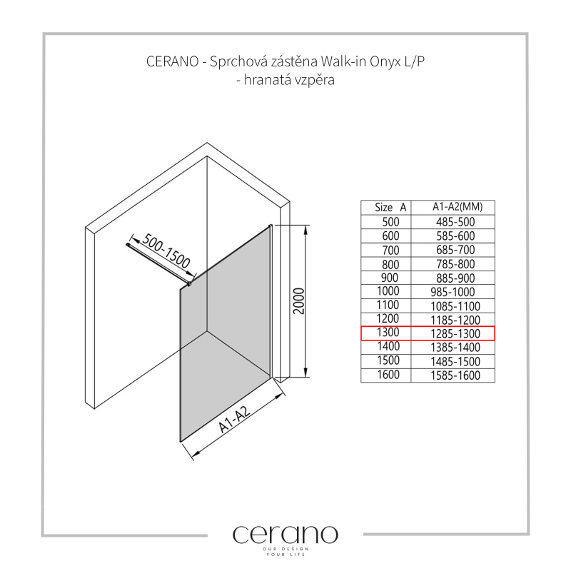 expedice do 10 dnůCERANO Sprchová zástěna Walk-in Onyx L/P černá matná, transp.sklo 130x200 cm CER-426370