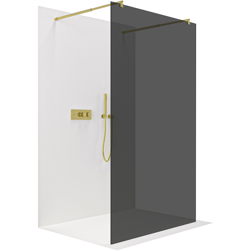CERANO - Sprchová zástěna Walk-in Onyx Duo L/P - 8 mm - kulatá vzpěra - zlatá, grafitové sklo - 120x200 cm