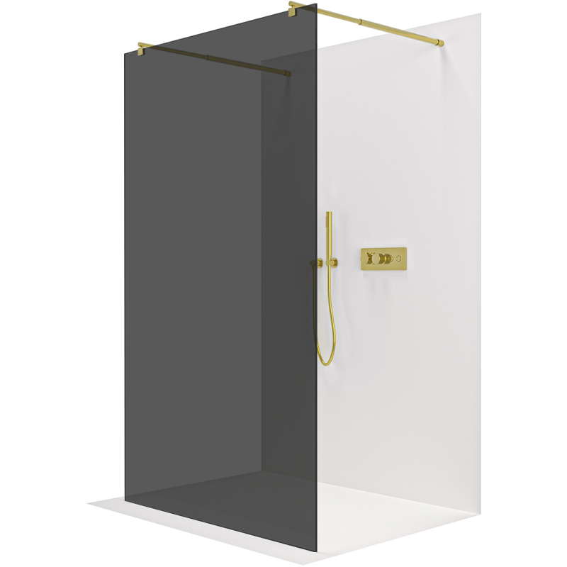 CERANO - Sprchová zástěna Walk-in Onyx Duo L/P - 8 mm - kulatá vzpěra - zlatá, grafitové sklo - 160x200 cm