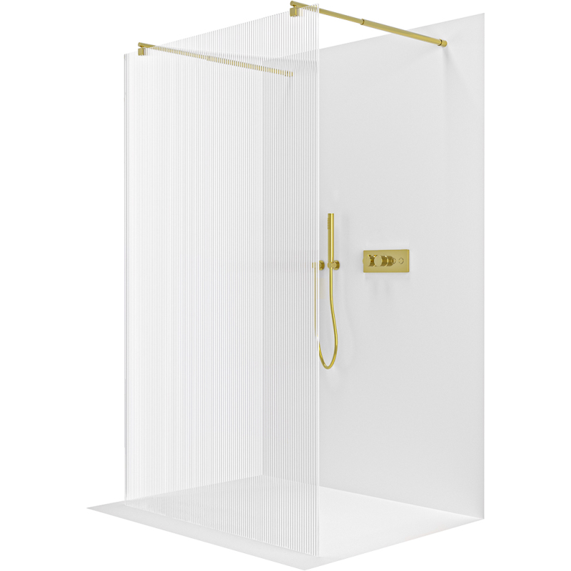 CERANO - Sprchová zástěna Walk-in Onyx Duo L/P - 8 mm - kulatá vzpěra - zlatá, rýhované sklo - 100x200 cm