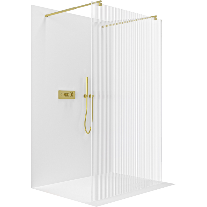 CERANO - Sprchová zástěna Walk-in Onyx Duo L/P - 8 mm - kulatá vzpěra - zlatá, rýhované sklo - 60x200 cm