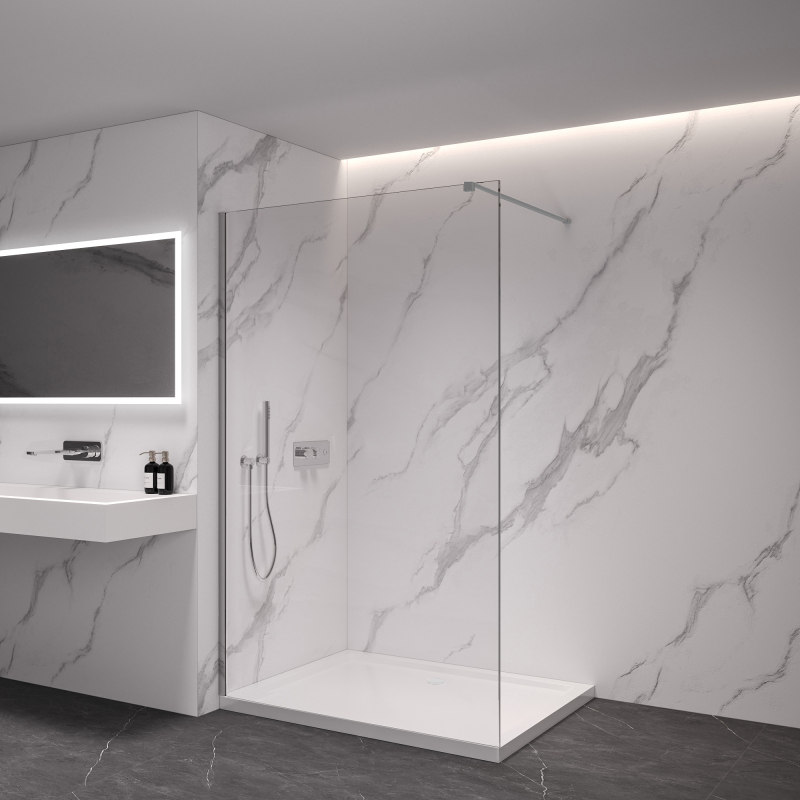 10 mm sklo: Nejvyšší kvalita, maximální pevnost a stabilita. Tento typ skla se používá zejména pro walk-in sprchové zástěny, kde je důležitá robustnost a pevnost. Pro sprchové dveře je však tato tloušťka nepraktická, protože sklo je příliš těžké, což komplikuje otevírání a zavírání.