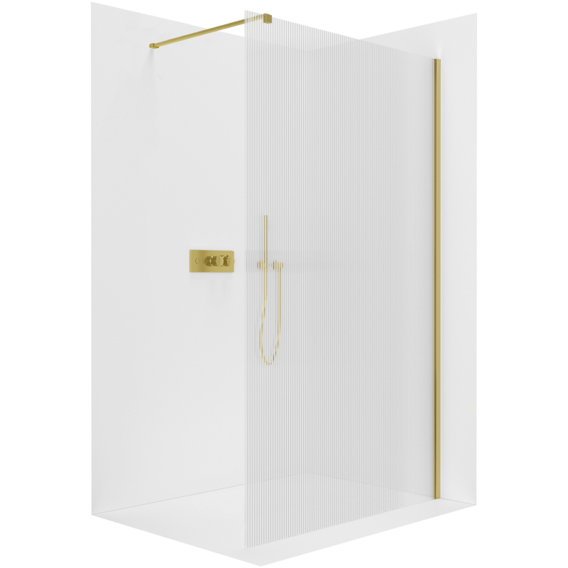 CERANO - Sprchová zástěna Walk-in Onyx Cube L/P - 8 mm - hranatá vzpěra - zlatá, rýhované sklo - 150x200 cm