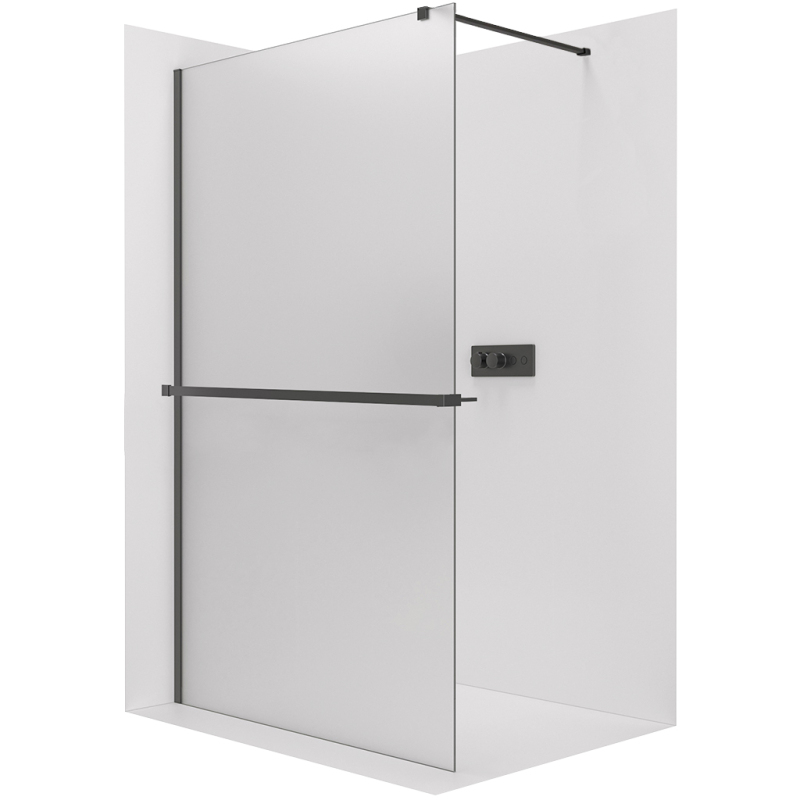 CERANO - Sprchová zástěna Walk-in Onyx Cube L/P - 8 mm + polička/držák na ručníky - hranatá vzpěra - černá matná, mléčné sklo - 70x200 cm