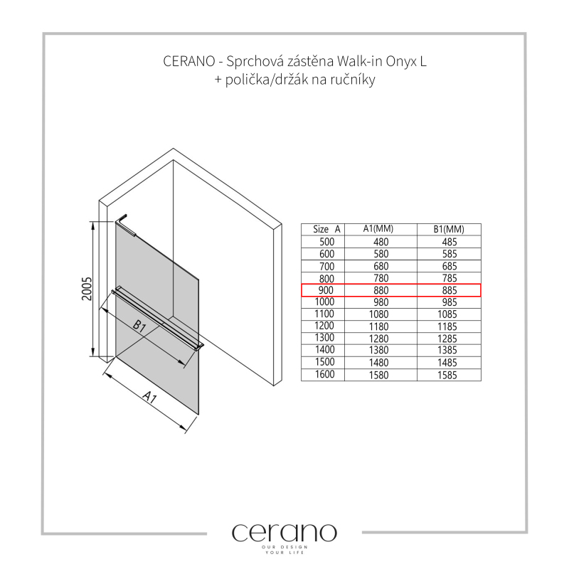 expedice do 10 dnůCERANO Sprch.zástěna Walk-in Onyx L/P černá mat., transp.sklo 110x200cm CER-DY101B-110-200
